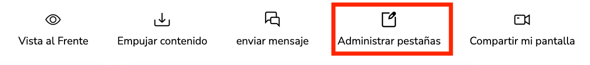 La función de Adminiastrar pestañas le otorga a usted, como profesor, la visibilidad y el control de todas las pestañas abiertas que se ejecutan durante su sesión de clase.