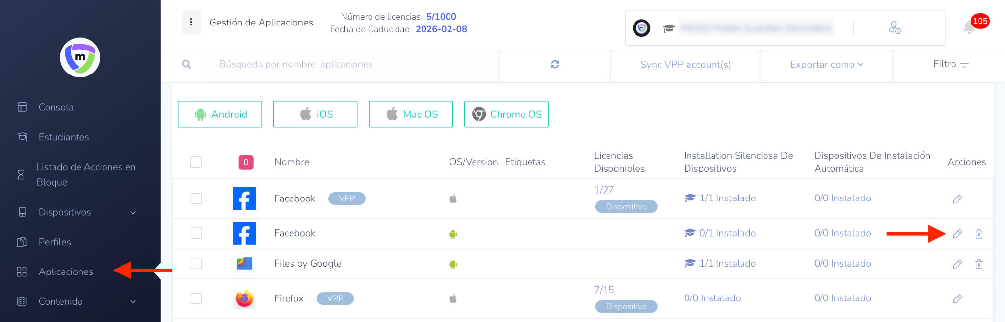 Los administradores pueden monitorear las aplicaciones instaladas manualmente desde la App Store y configurar las aplicaciones para que se instalen automáticamente o por cuenta propia tras ser añadidas por el administrador. También pueden verificar si las aplicaciones fueron instaladas manualmente a través de la App Store, incluyendo las aplicaciones nativas. Siga los pasos a continuación para gestionar y monitorear las aplicaciones.