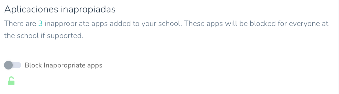 Desactivar la lista predeterminada: Si desea que su escuela dependa de su propia lista de aplicaciones bloqueadas y prescinda de la lista predeterminada, puede desactivar esta opción en las Preferencias Globales de la escuela.