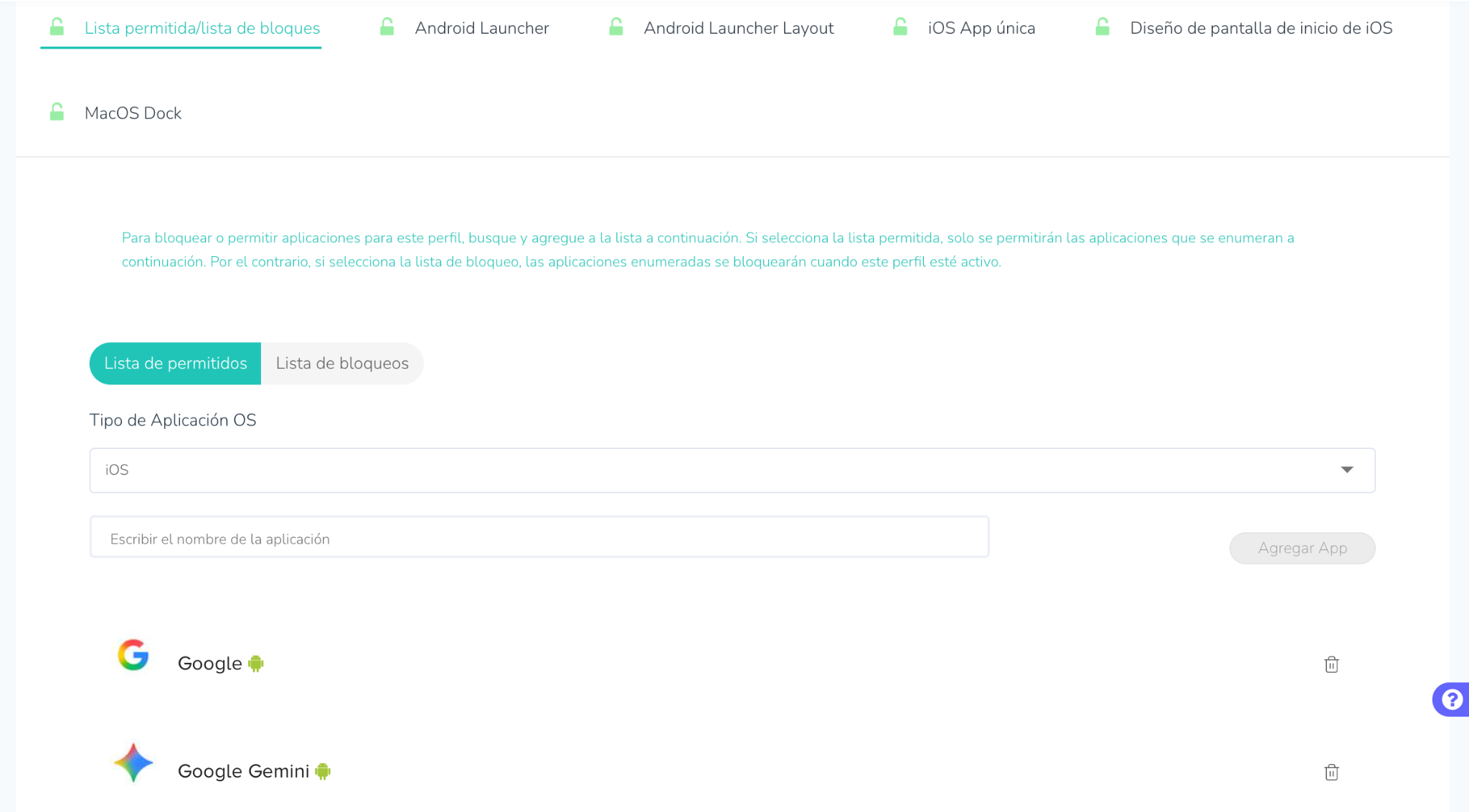 Personalizar la lista de aplicaciones bloqueadas
