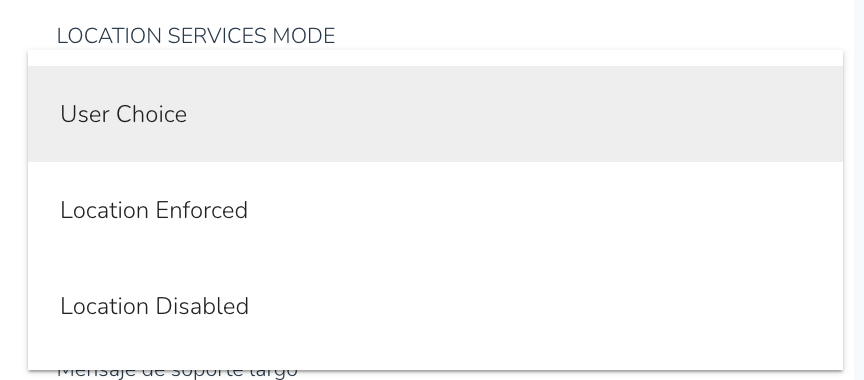 - Location Enforced: Obliga a mantener activos los servicios de ubicación en el dispositivo.