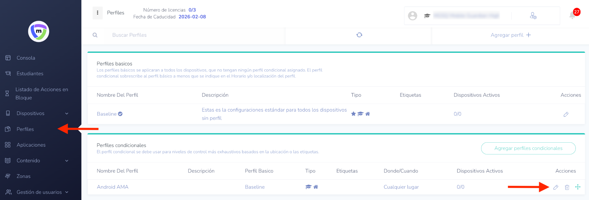 - Acceda al panel de control de Mobile Guardian de su escuela.