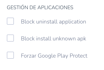 - Block uninstall application: Evita que los usuarios desinstalen aplicaciones.