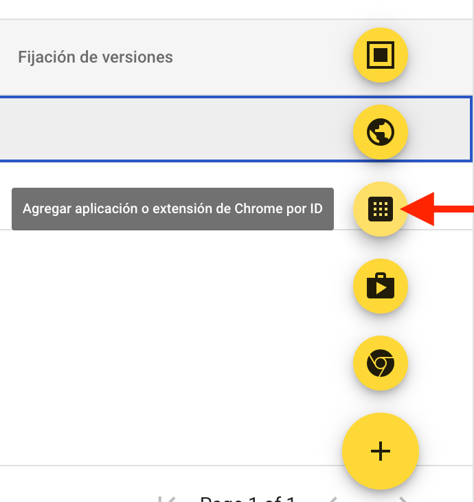 - En el lado derecho de la página "Apps & extensions" (Aplicaciones y extensiones), localice y haga clic en el botón amarillo con el signo "+" (normalmente situado en la esquina inferior derecha).