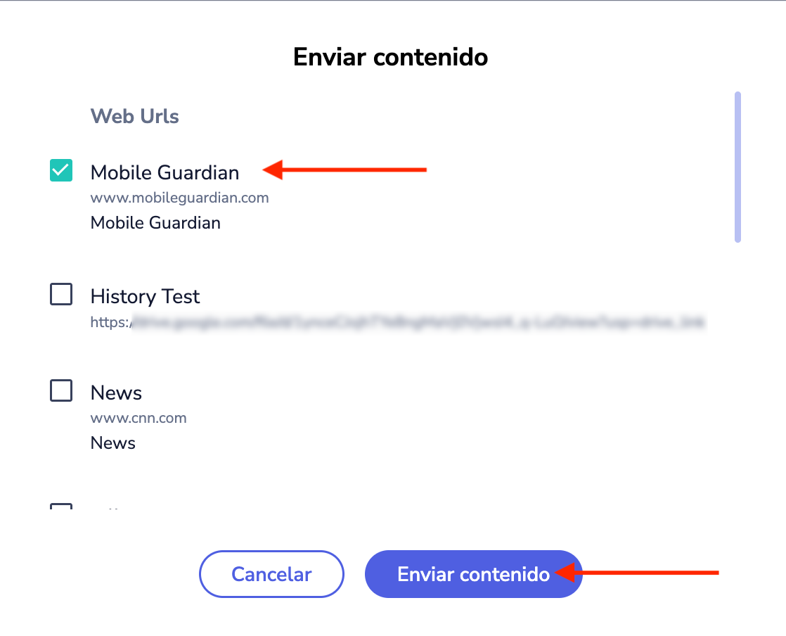 El contenido se compartirá ahora con éxito directamente en los dispositivos de sus alumnos. Este contenido compartido también se almacenará en la sección Mi catálogo de la aplicación Mobile Guardian de sus estudiantes.