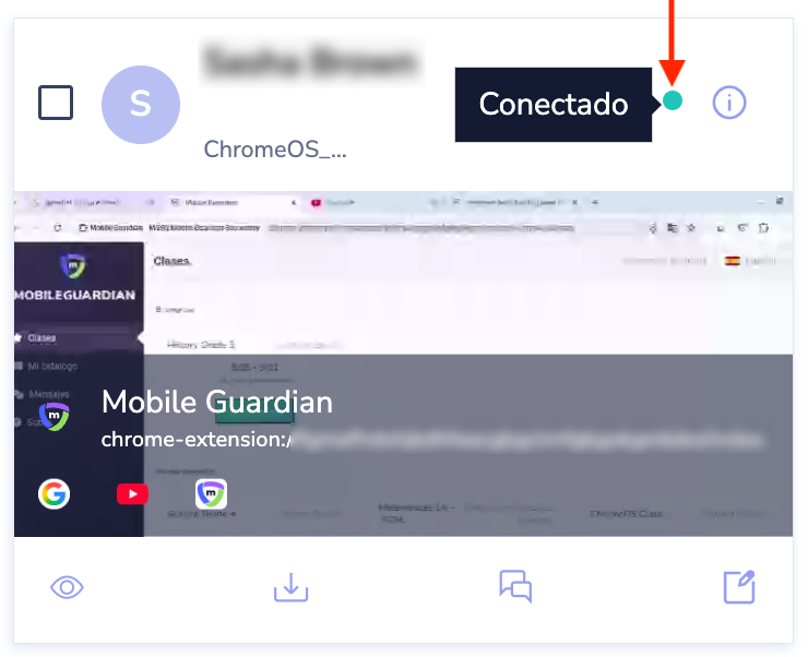 La Herramienta de gestión de aula de Mobile Guardian permite a los educadores gestionar de manera eficaz los dispositivos de los estudiantes durante las sesiones de clase activas. Un aspecto fundamental de esta gestión es la capacidad de verificar rápidamente el estado de conexión de los dispositivos de los alumnos, lo que garantiza que los profesores tengan una visión clara y en tiempo real de la conectividad de los mismos.