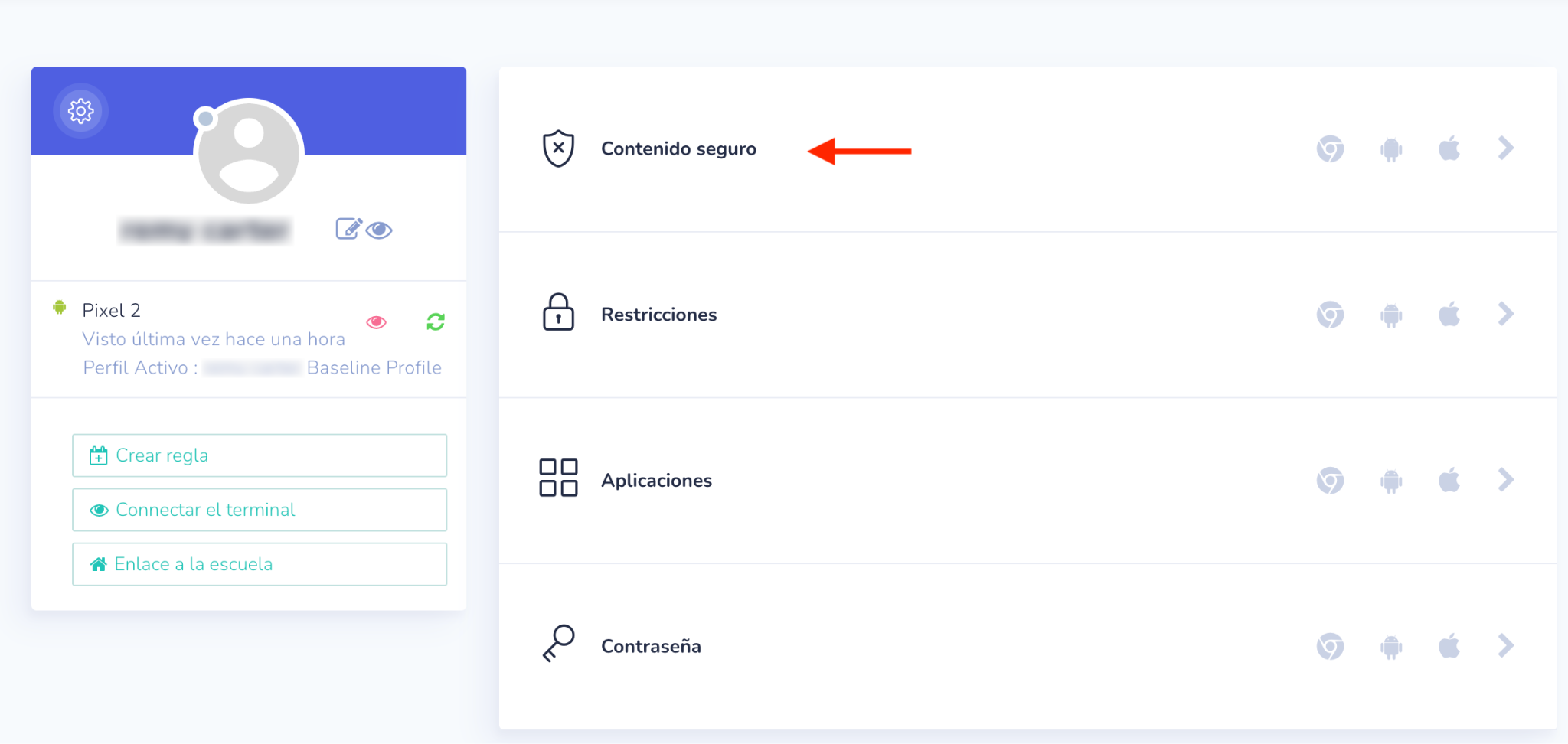 Dentro de los ajustes de Contenido Seguro, se le presentarán algunas otras opciones: