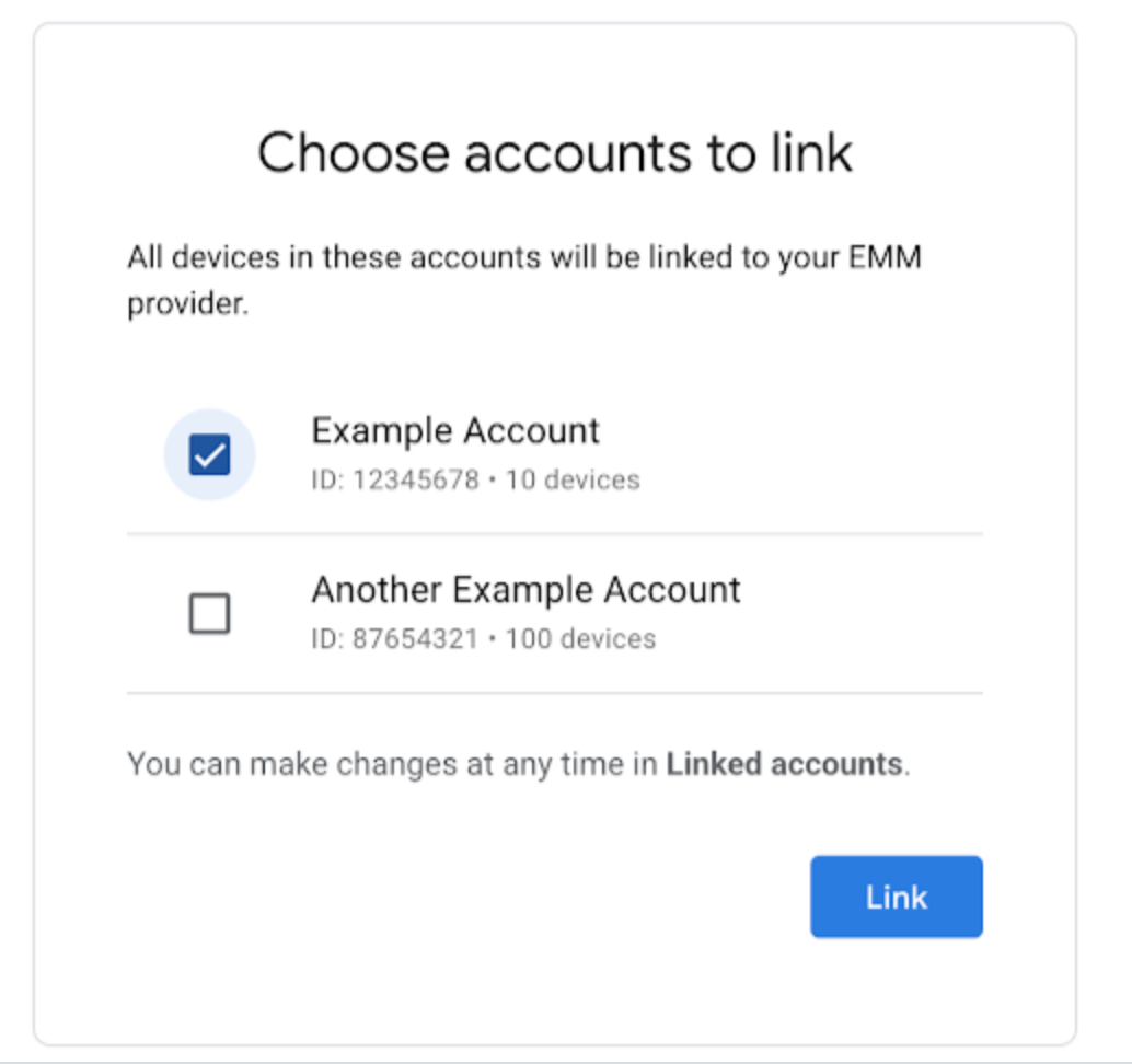 Seleccione la cuenta de Zero-Touch deseada y haga clic en Vincular (Link).