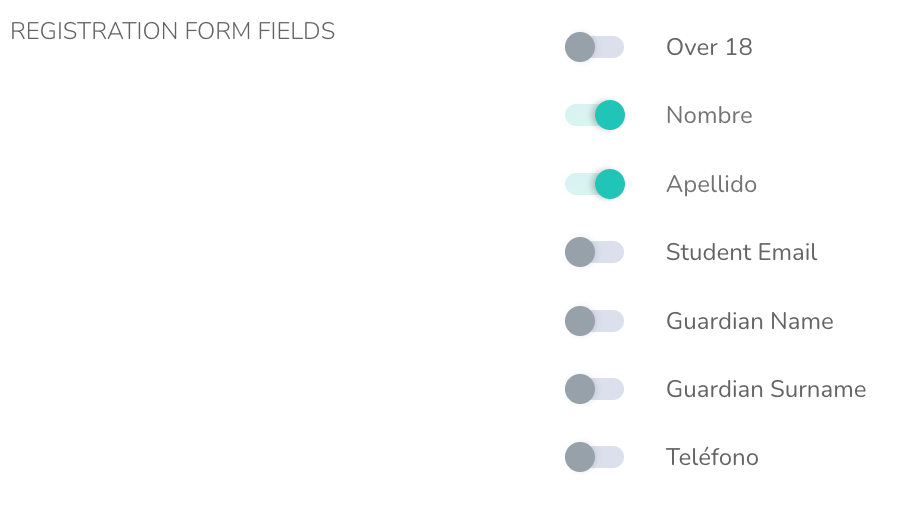 Despu茅s de los pasos finales de aceptaci贸n, al seleccionar "Activate" se activar谩 la aparici贸n de los Campos de Registro del Estudiante. El contenido de este formulario coincidir谩 exactamente con el conjunto de requisitos configurados (opciones activadas o desactivadas) por el administrador de la escuela.