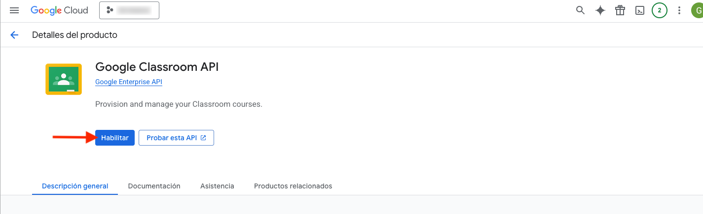 Habilitar la API de Classroom (si corresponde):