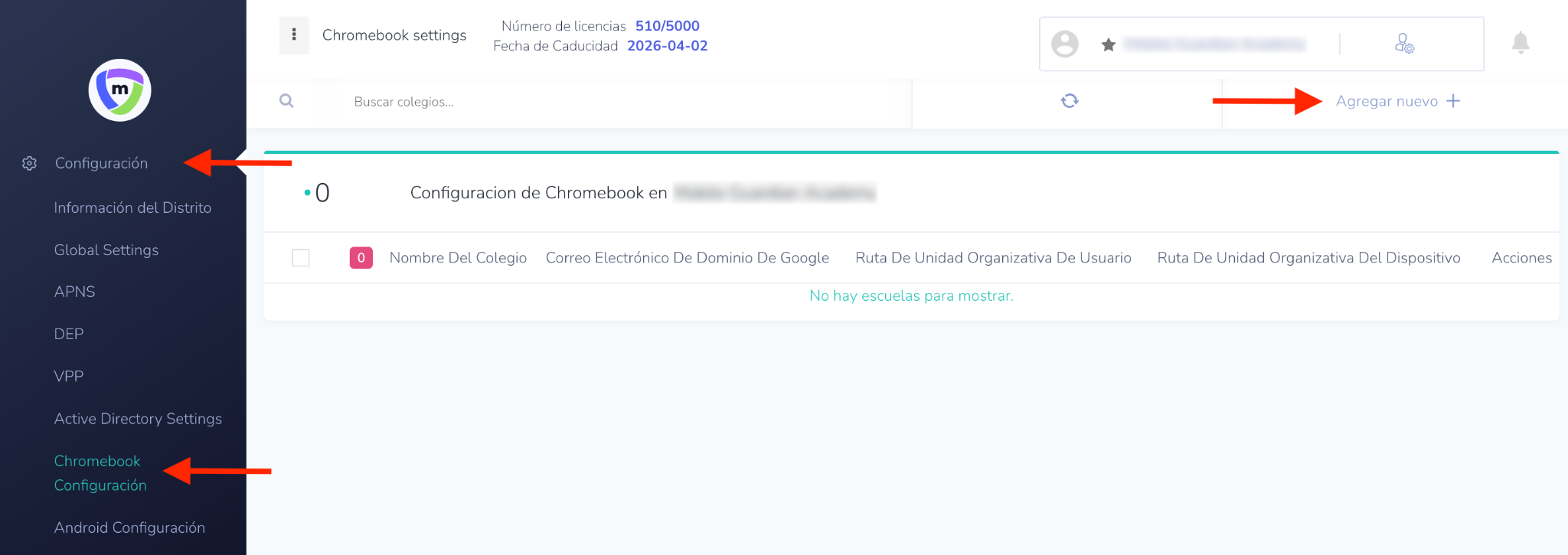 - Navegue a Configuración > Chromebook Configuración > Agregar nuevo.