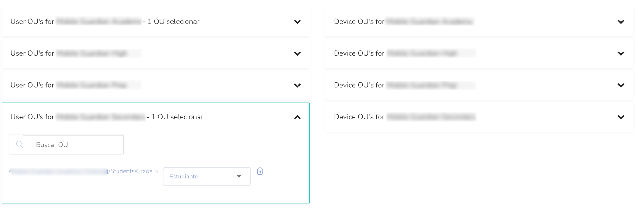 - Ahora seleccione la Escuela y añada las OUs respectivas para dicha escuela.
