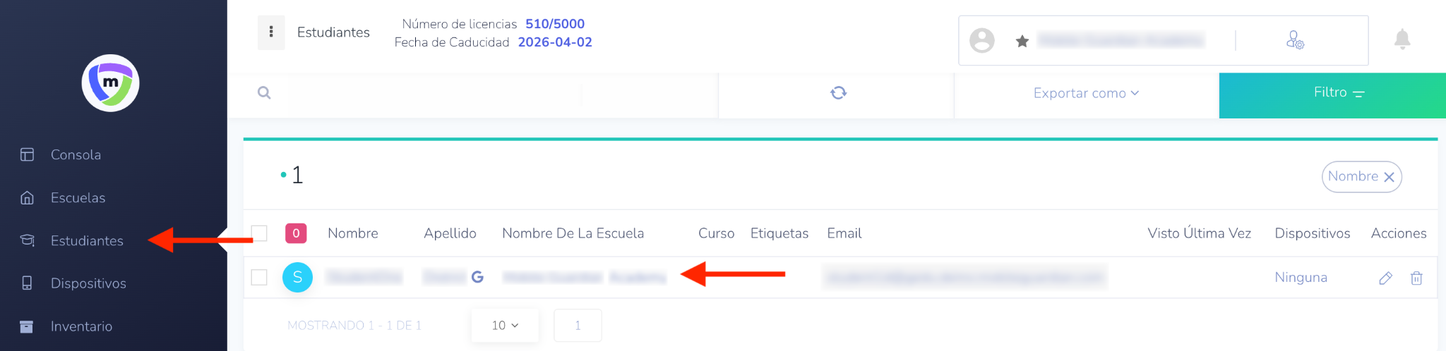 - Navegue a Estudiantes. Los estudiantes sincronizados tendrán el logotipo de Google Workspace junto a sus nombres.