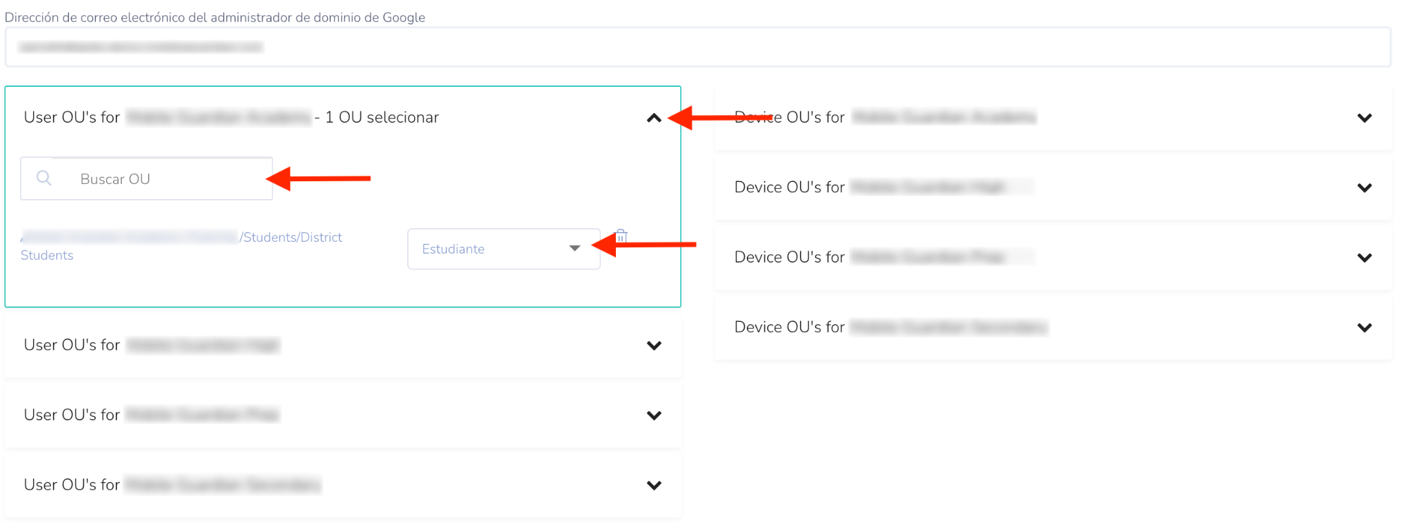 Deberá elegir sus respectivas OUs para garantizar que la configuración e inscripción funcionen correctamente.
