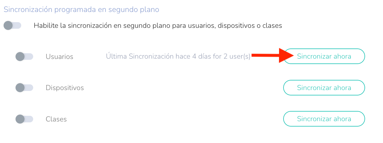 - Haga clic en el botón Sync Now para la opción de usuarios que desea sincronizar.