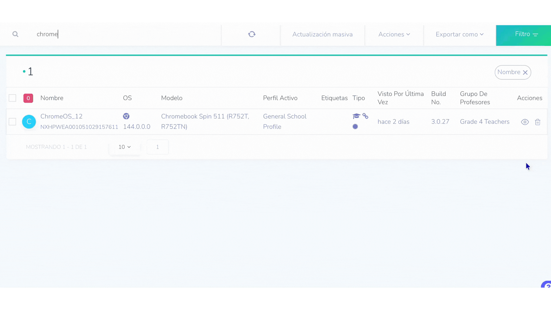 | Asignar a grupo de profesores | Mueve el dispositivo a un "Grupo de profesores" preconfigurado, aplicando los permisos específicos y las suites de aplicaciones asociadas con dicho grupo. |