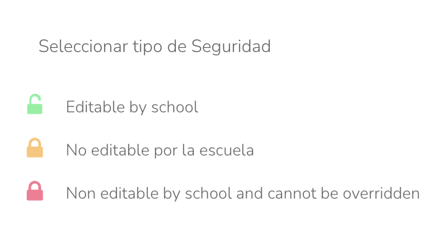 - Grupos de perfiles escolares: Listas de escuelas que recibirán los perfiles seleccionados en grupo.