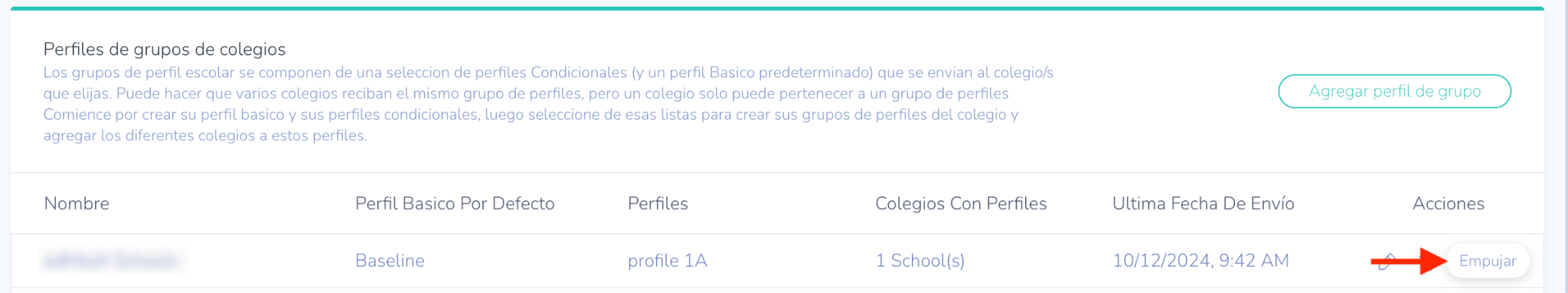 Para enviar los perfiles a sus grupos de perfiles escolares, utilice la acción "Push" (Enviar) situada en el lado derecho.