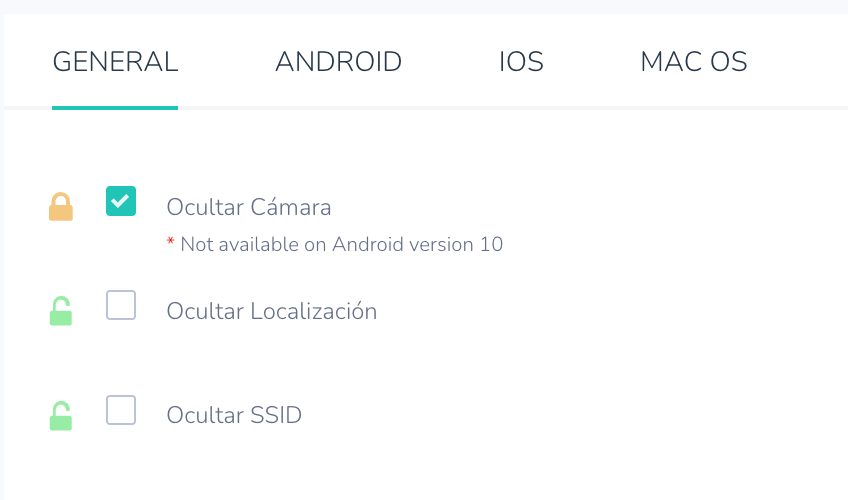 - Control de cámara delegado: Si el administrador del distrito desea desactivar la cámara de forma predeterminada pero permite que los administradores escolares la activen si es necesario, utiliza un candado ámbar. Esto bloquea la cámara mientras el perfil base (Baseline) está activo, pero permite que los administradores escolares la anulen mediante un perfil condicional.