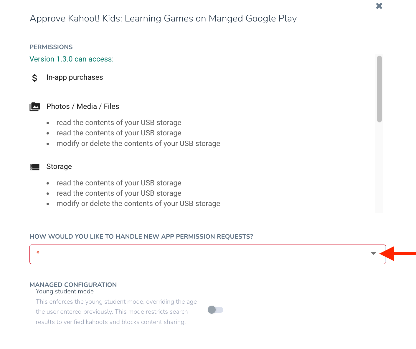 - En la pantalla emergente, elija cómo desea gestionar las nuevas solicitudes de permisos.
