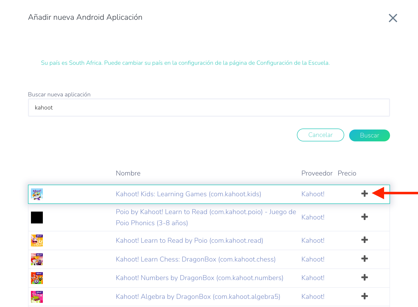 - Seleccione la aplicación deseada haciendo clic en el símbolo "+" junto a la aplicación.