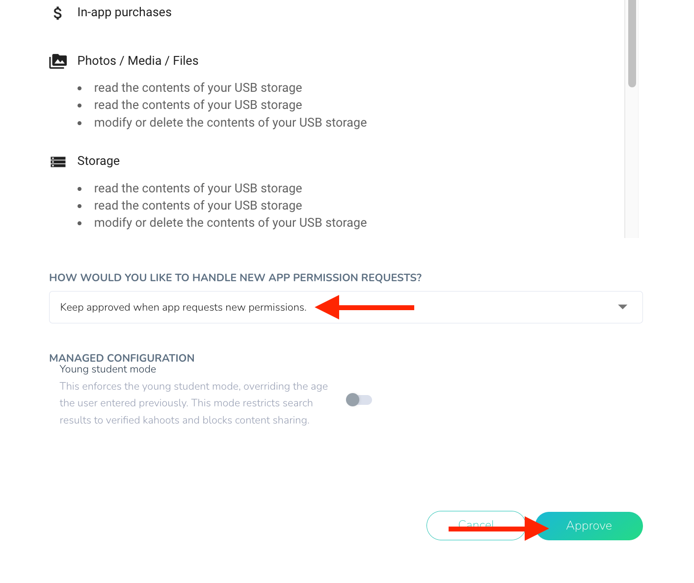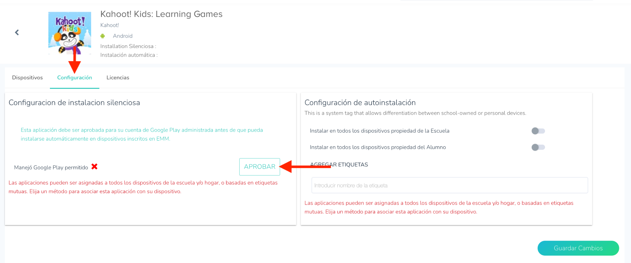- Una vez que reciba la confirmación de que la aplicación ha sido aprobada para su empresa, permita la aplicación para dispositivos propiedad de la escuela y propiedad del hogar.