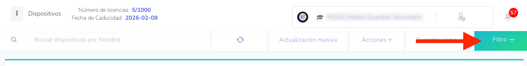 - En la página de dispositivos, haga clic en Filtro en la esquina superior derecha.