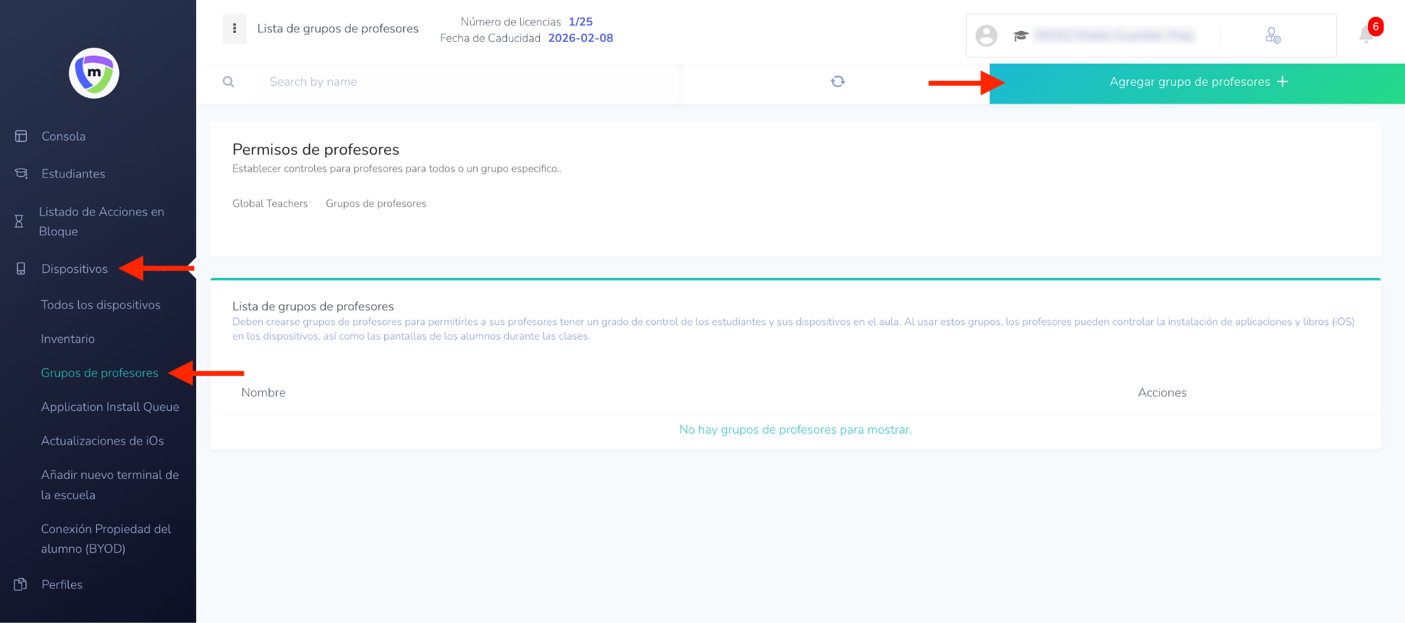 Gestión de Grupos de Profesores en Mobile Guardian