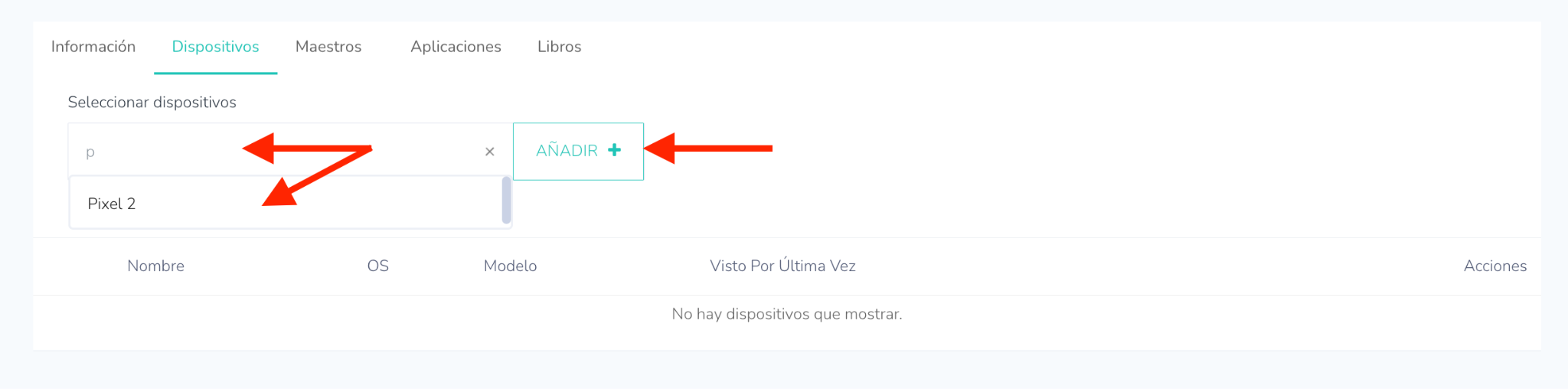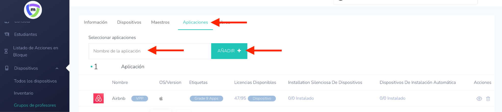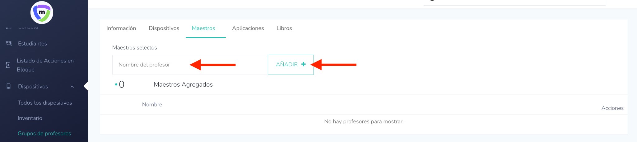 - Vaya a la pestaña de Dispositivos: Asigne los dispositivos de los estudiantes al grupo de profesores seleccionando los dispositivos necesarios para dicho docente.