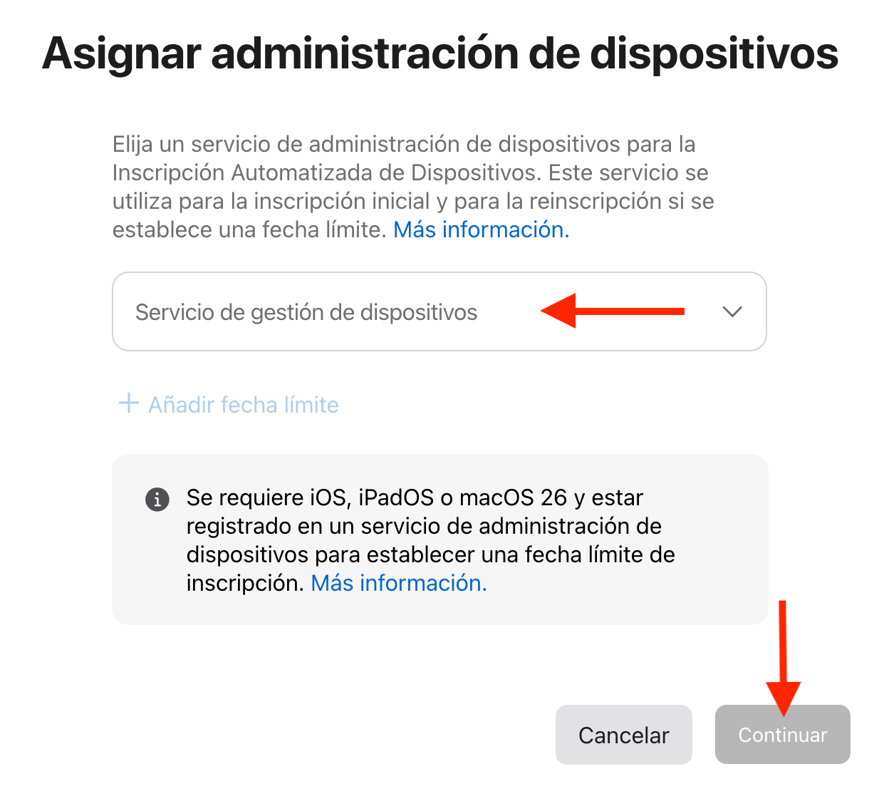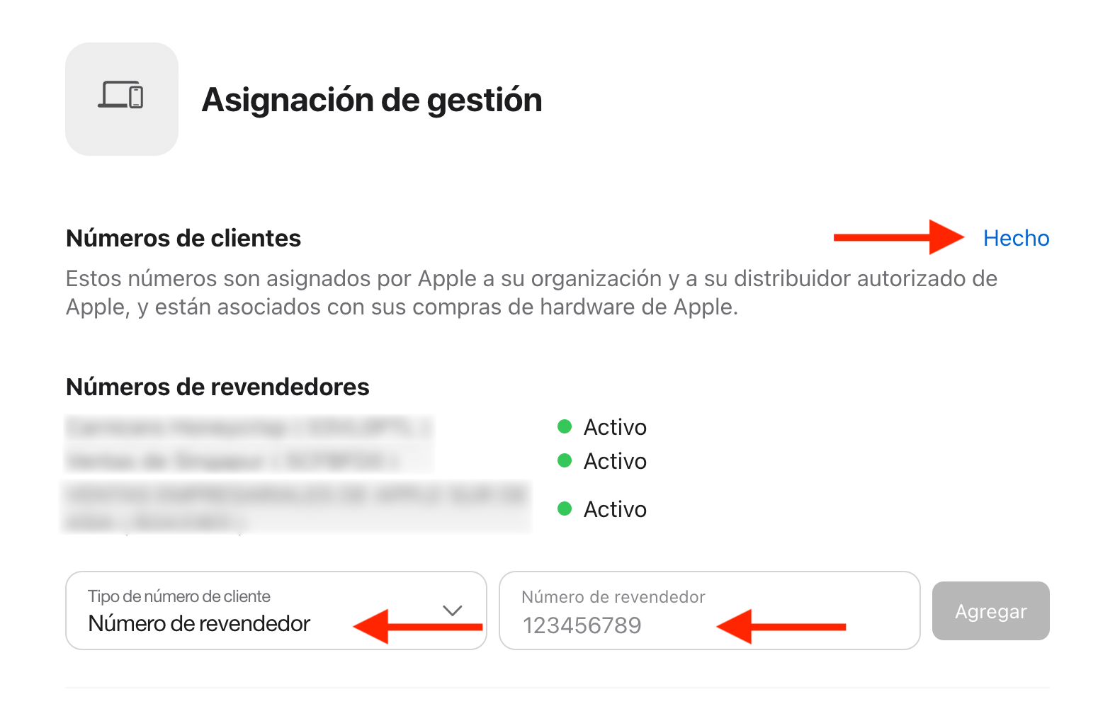 - Para más detalles sobre cómo añadir un ID de Distribuidor, consulte la Guía del Programa de Inscripción de Dispositivos de Apple.