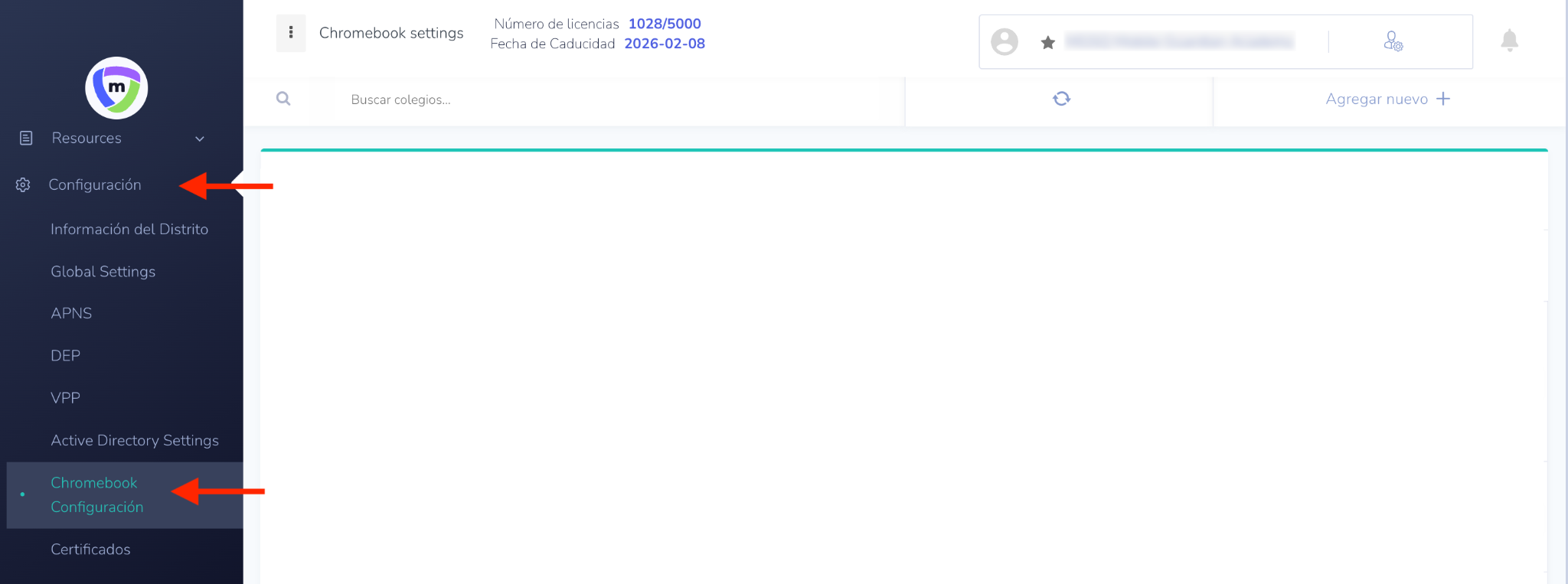 - Haga clic en el botón "Agregar nuevo+" para añadir el archivo de configuración de Chromebook.