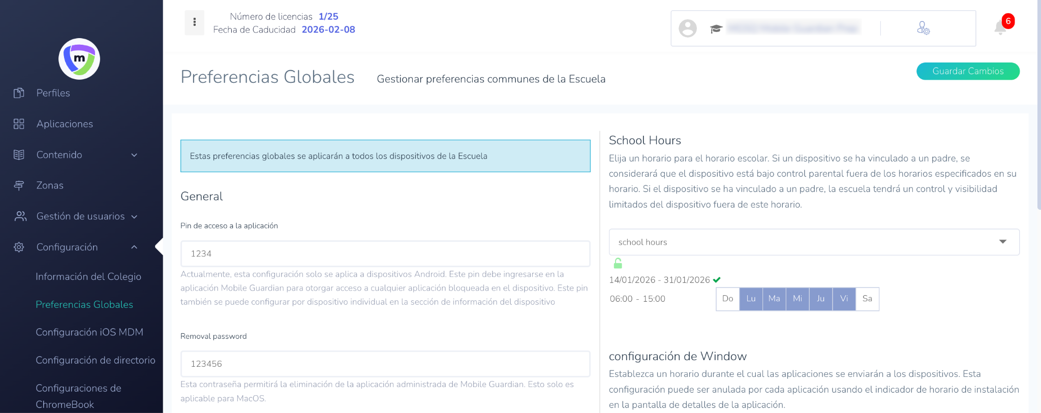 Como parte de nuestra Iniciativa de Privacidad de Datos en Mobile Guardian, hemos realizado cambios significativos para mejorar la privacidad del usuario al limitar los horarios en los que los profesores pueden iniciar clases y rastrear el tráfico del filtro web de los estudiantes. Esta iniciativa tiene como objetivo simplificar el proceso para determinar si un padre o la escuela controla un dispositivo en un momento dado, ya que este horario se utilizará en lugar de los perfiles aplicados por etiqueta o los horarios de dispositivos individuales.