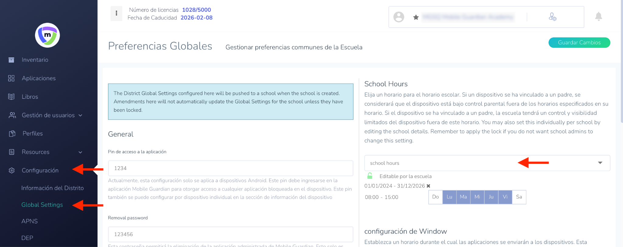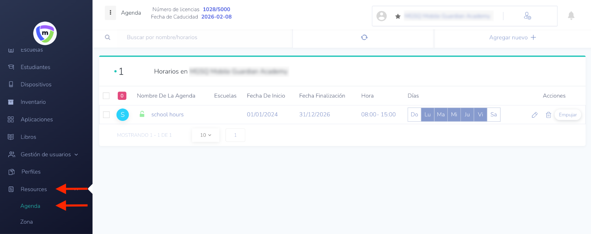 Debe asegurarse de haber añadido la configuración del horario de la escuela o del distrito antes de que los profesores necesiten iniciar las clases. De lo lo contrario, su experiencia con Mobile Guardian podría verse afectada negativamente.