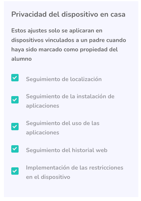 - Control fuera del horario escolar: Permite al padre gestionar el dispositivo del hijo después del horario escolar.