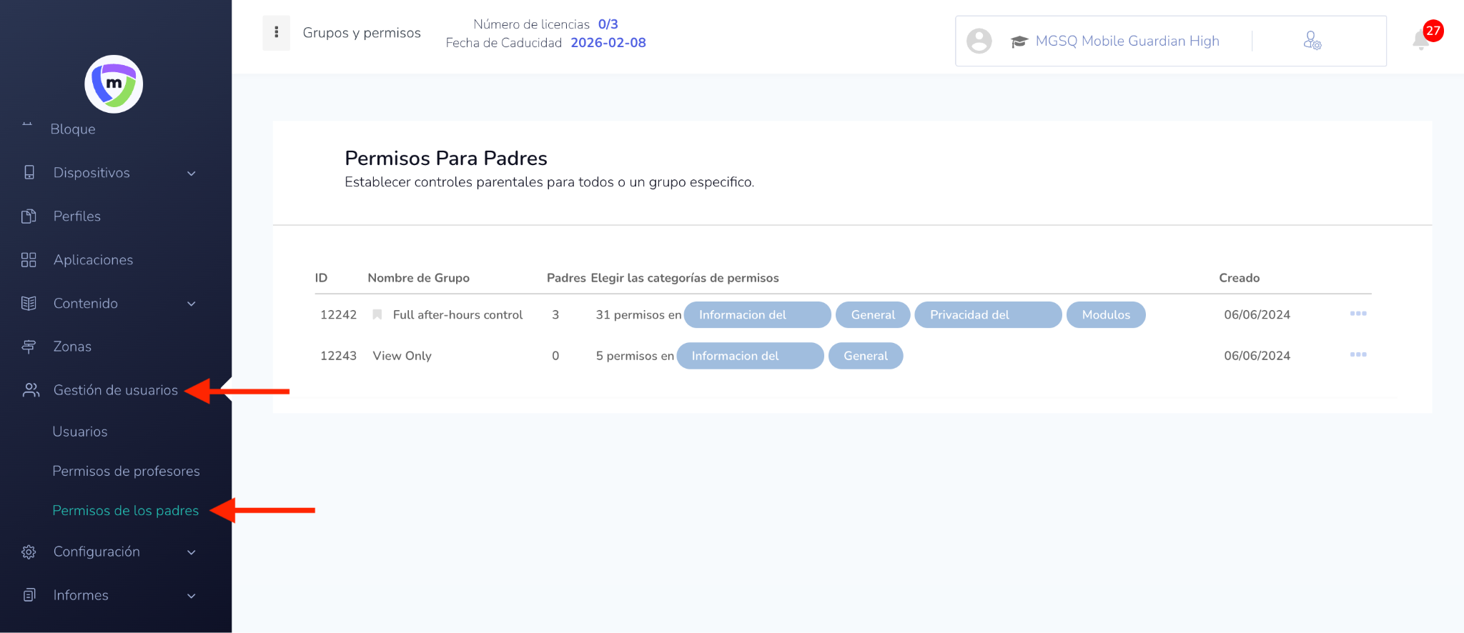 Siguiendo estos pasos, los administradores pueden gestionar de manera eficiente los permisos de los padres dentro de su escuela, asegurando que los usuarios sean asignados a los grupos adecuados según las políticas del distrito.