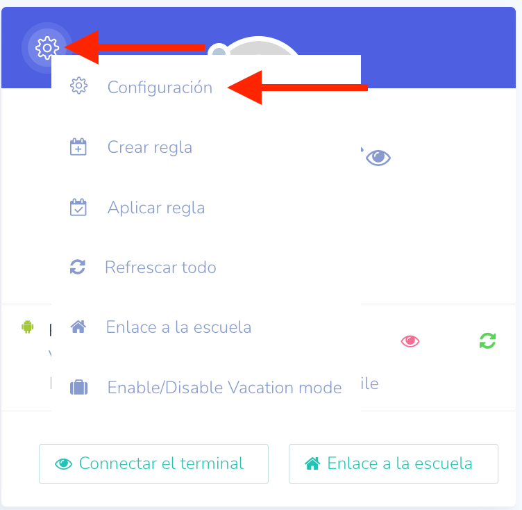 - Haga clic en el botón de configuración del niño específico que desea gestionar.