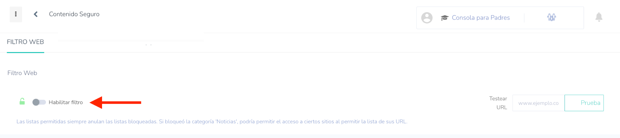 Para obtener una guía detallada sobre cómo configurar el filtro de YouTube, haga clic aquí.
