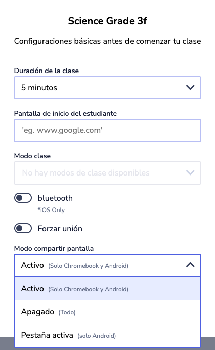 El uso compartido de pantalla ofrece a los profesores la capacidad de ver las pantallas de los estudiantes durante las clases. Esta función permite a los docentes visualizar la actividad actual del dispositivo del alumno y gestionarla mediante diversas acciones de clase disponibles.