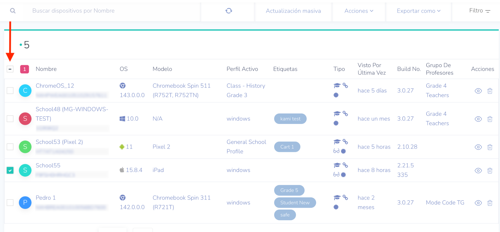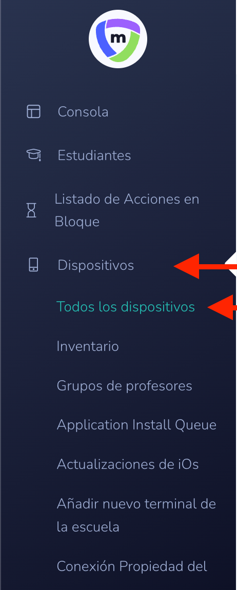 Desde el panel de administración escolar, vaya a la pestaña Dispositivos.