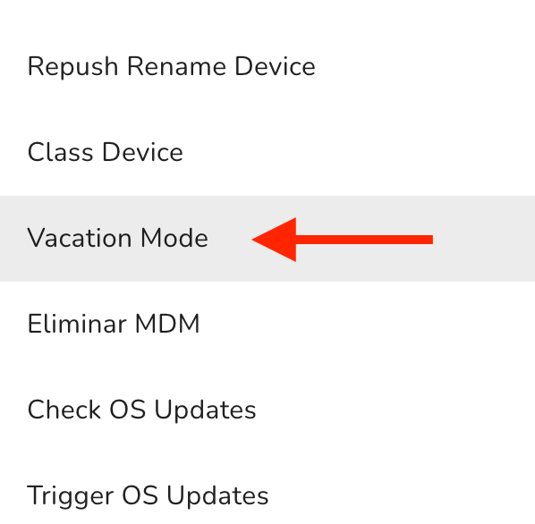 Todos los dispositivos con el modo vacaciones habilitado tendrán un icono de maleta antes del nombre del dispositivo.