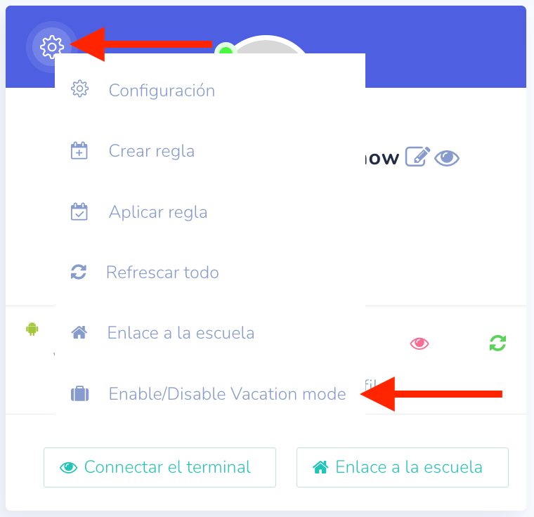 Pasos para activar el Modo de vacaciones en la tarjeta del niño: