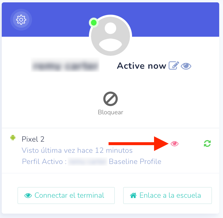 - En la esquina izquierda de la tarjeta del niño, haga clic en el icono del engranaje.
