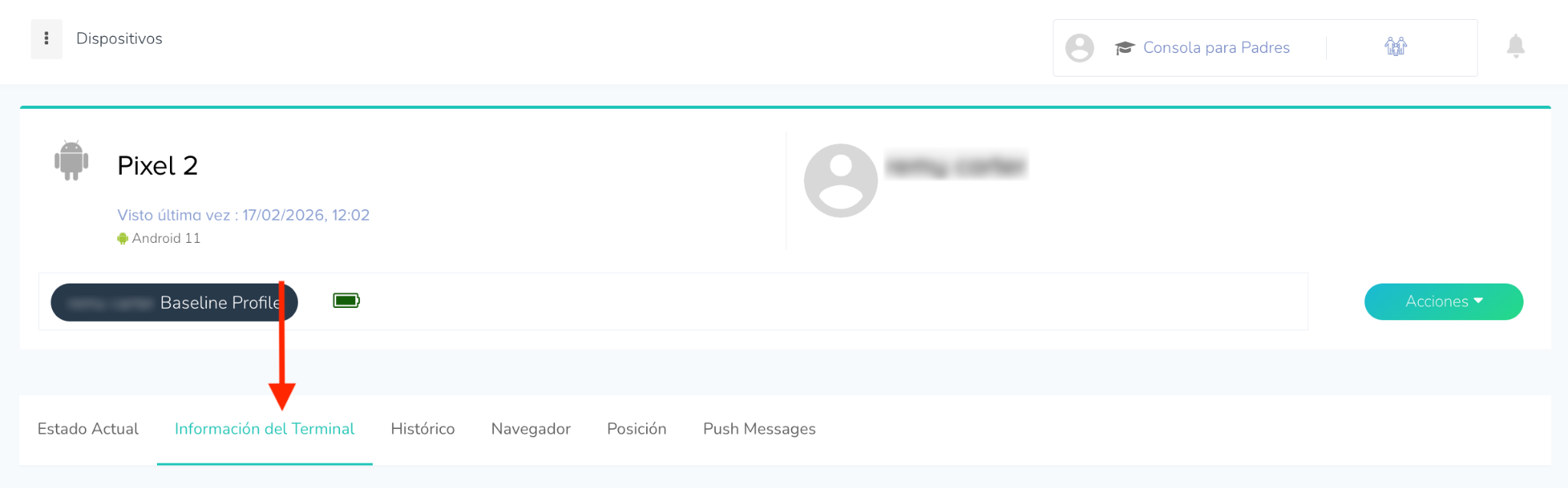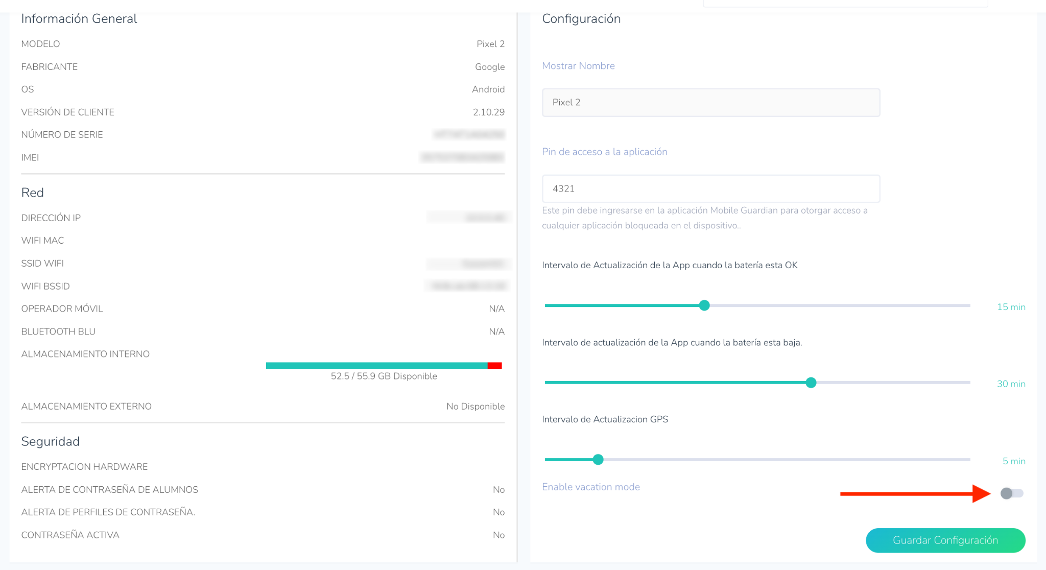 Activar el Modo de vacaciones desde la pestaña de Información del Dispositivo