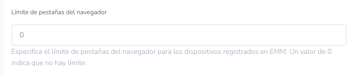 - Especifica el límite de pestañas del navegador para dispositivos inscritos en EMM.